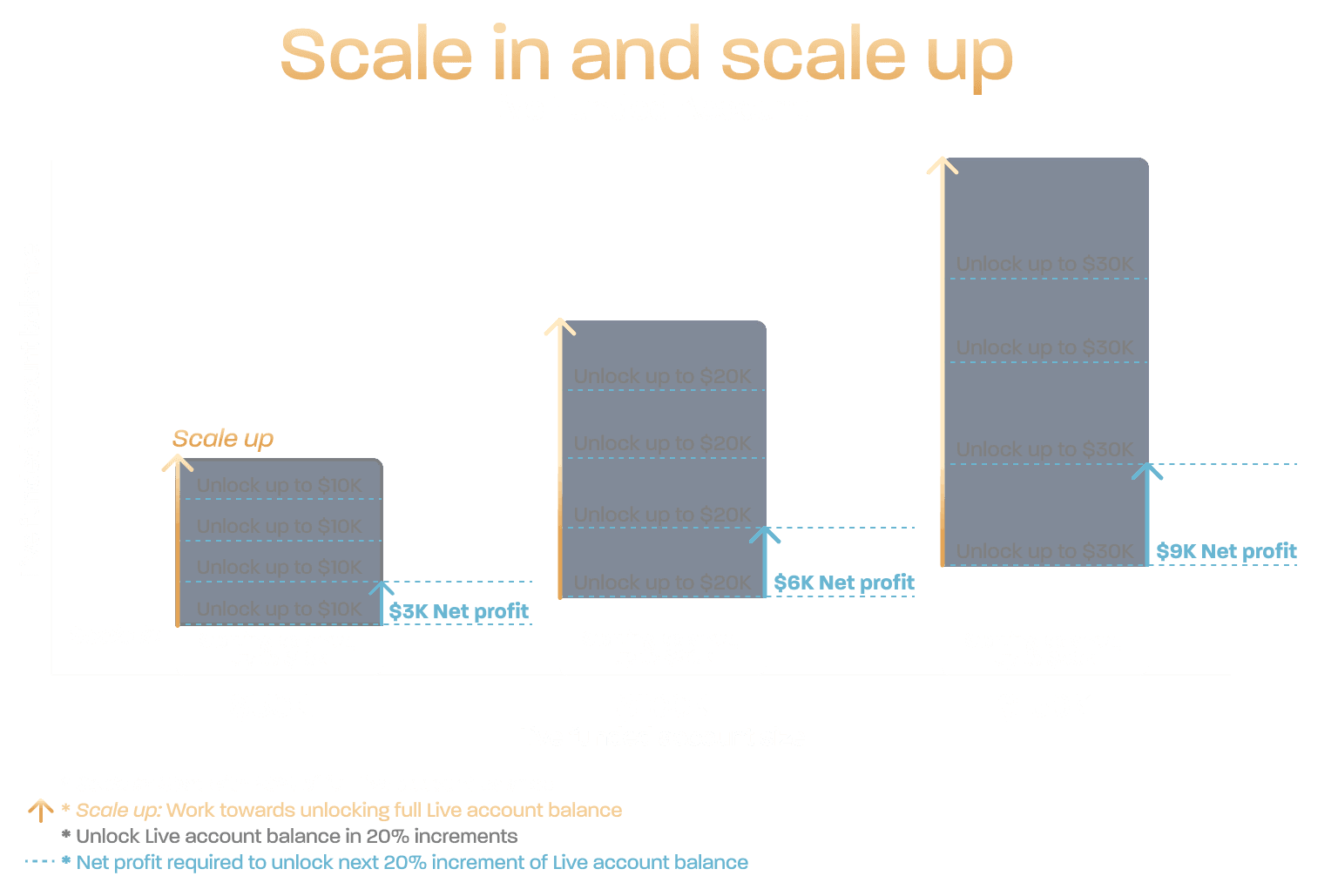 - Additional balance access is released as you achieve defined profit milestones